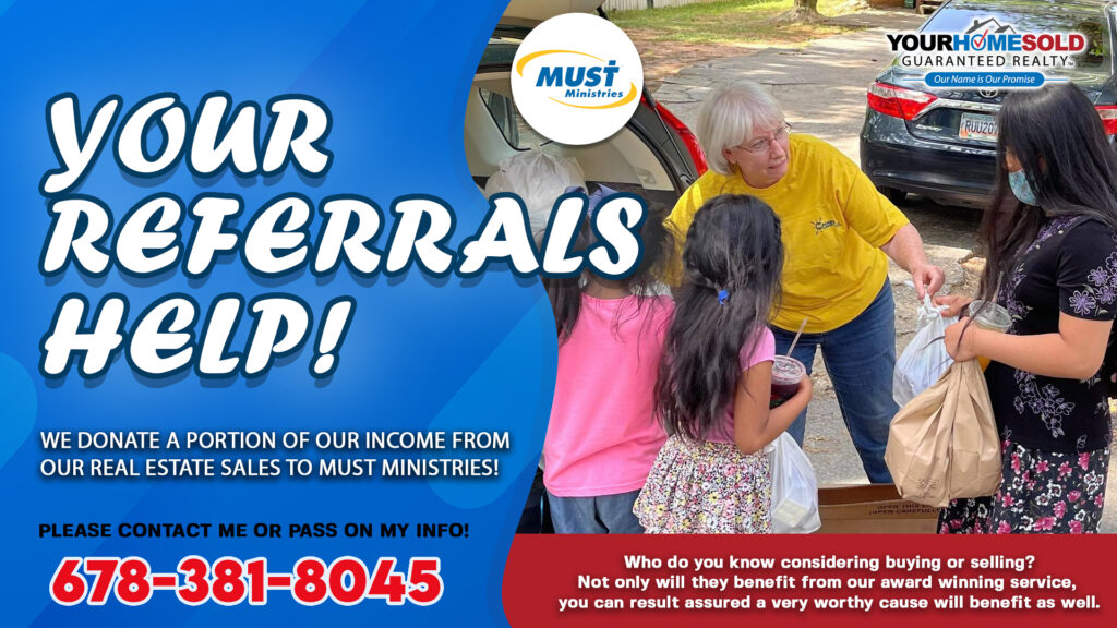 We are on a mission to raise $25K for MUST Ministries this year! Your Referrals HELP! We donate a portion of our income from our Real Estate Sales to MUST Ministries!