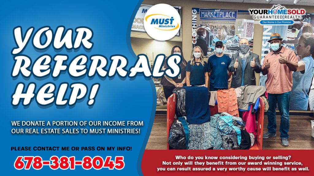 We are on a mission to raise $25K for MUST Ministries this year! Your Referrals HELP! We donate a portion of our income from our Real Estate Sales to MUST Ministries!